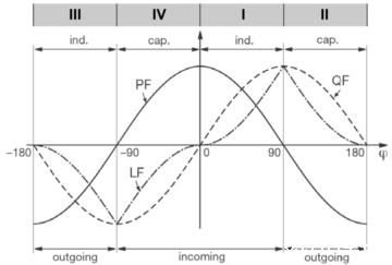 对于发电机或者说发电厂设计,发电机本身要工作在一定的滞后功率因数条件下才具有好的性能(第I象限),进相运行会导致铁芯损耗增加和端部漏磁增加(第IV象限)。这样是电能四象限定义并测量的其中一种应用。